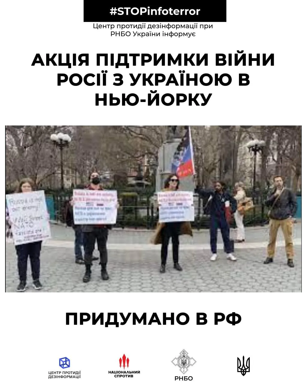 - мониторинг показал, что 27 февраля пропагандистские медиа уже давали подобную новость об акции в Нью-Йорке без фото с места событий.
