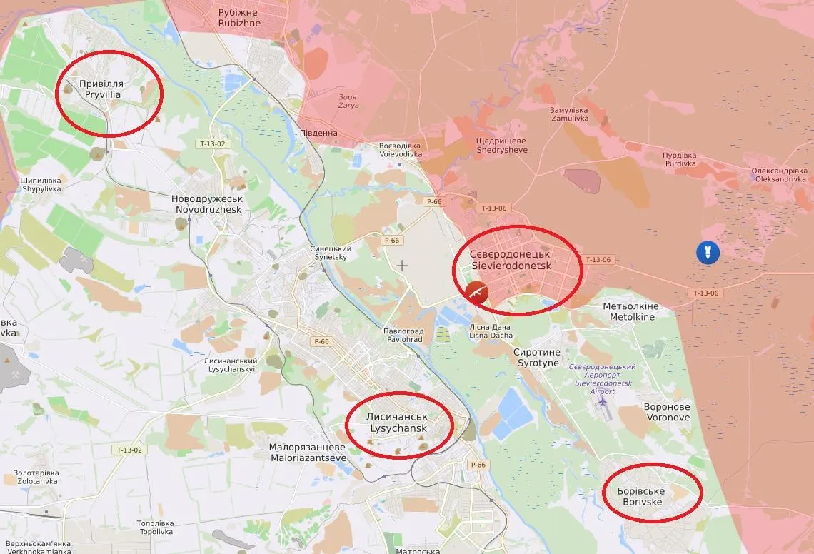 - Россия пытается отрезать Северодонецк от подконтрольной украинскому правительству территории. Для этого оккупанты уже уничтожили все мосты.