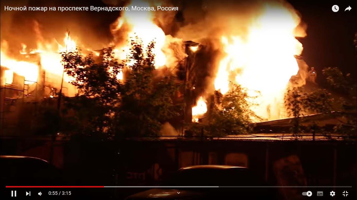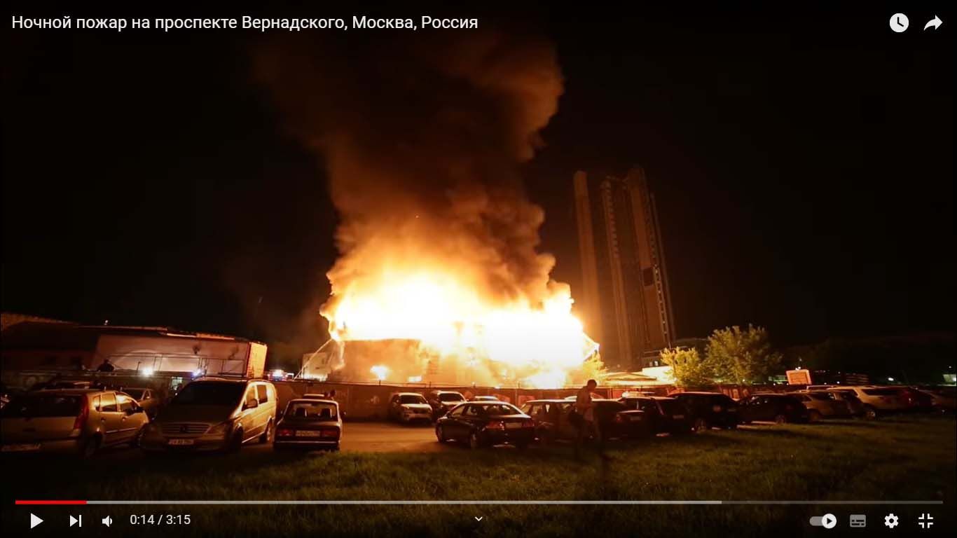 Известно, что Shutterstock – это коммерческая платформа визуальных материалов. В описании видео говорится, что это пожар на московском строительстве в ночь на 20 мая 2014 года.