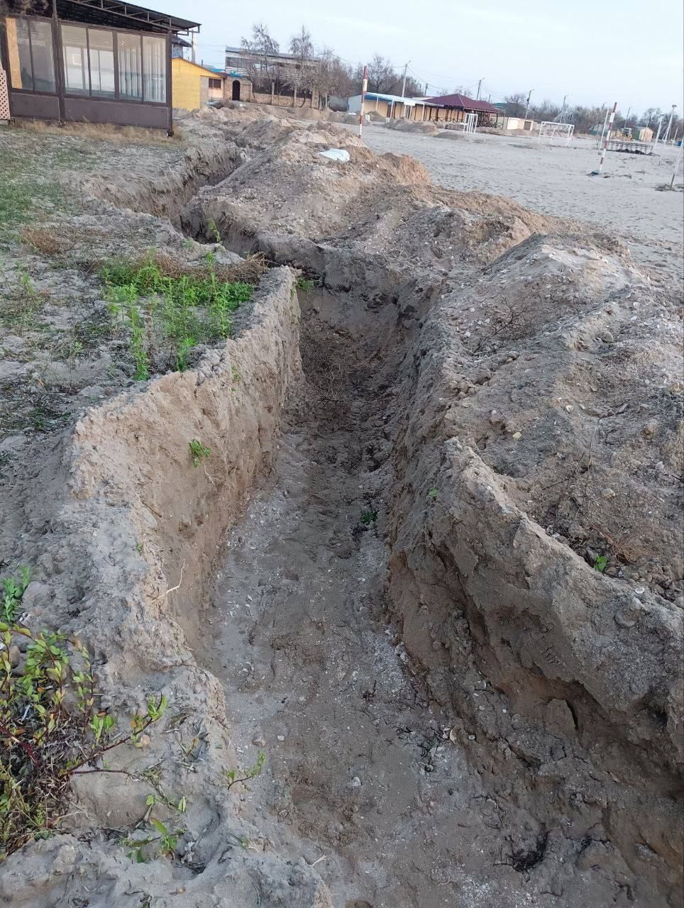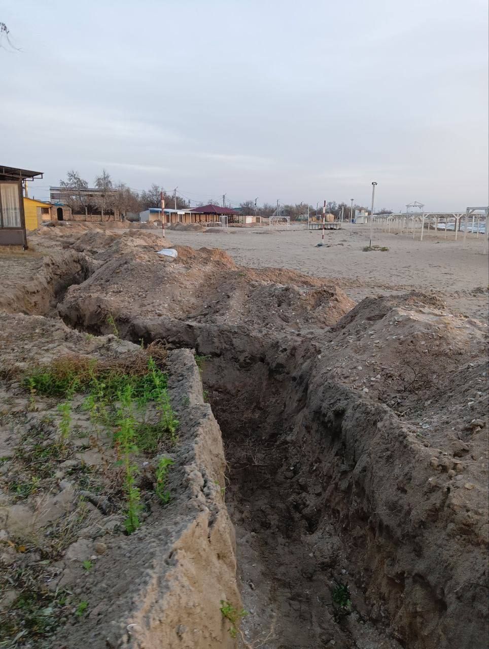 - После очередного "хлопка" в Крыму оккупанты начали рыть окопы на побережье полуострова. Траншеи уже выкопали на пляжах в поселке Черноморское. Вдоль окопов дежурит местная полиция.