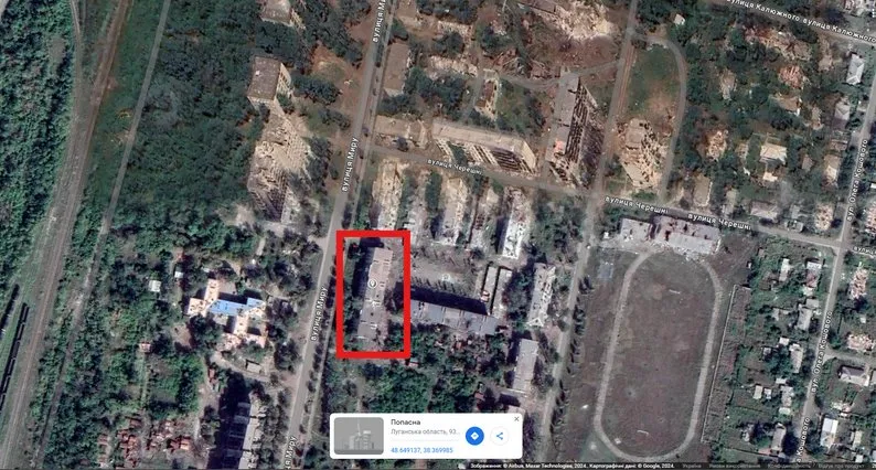 В подвале этого дома на улице Мира, 146 в Попасной россияне пытали своих же военных / Фото Общественного