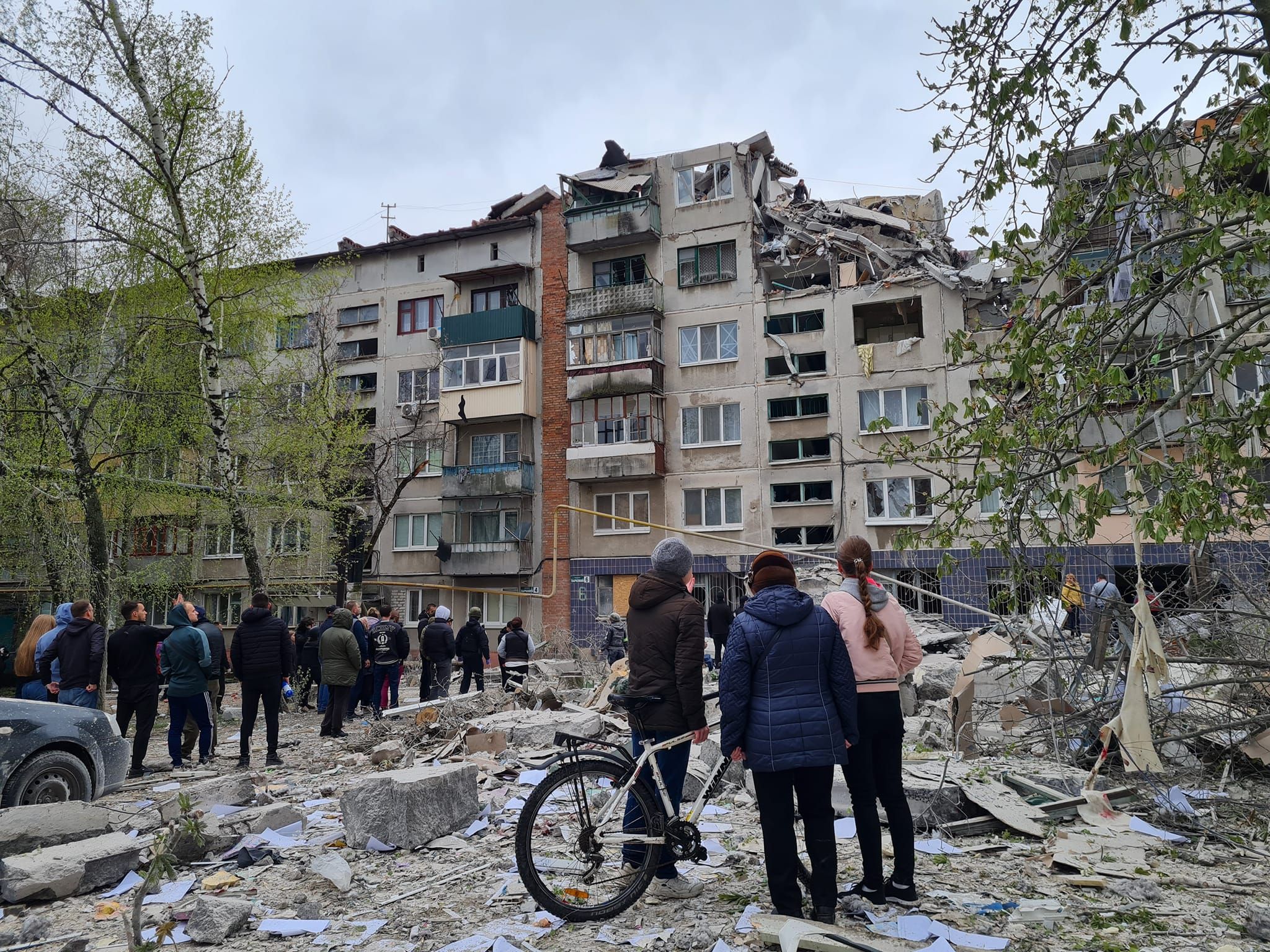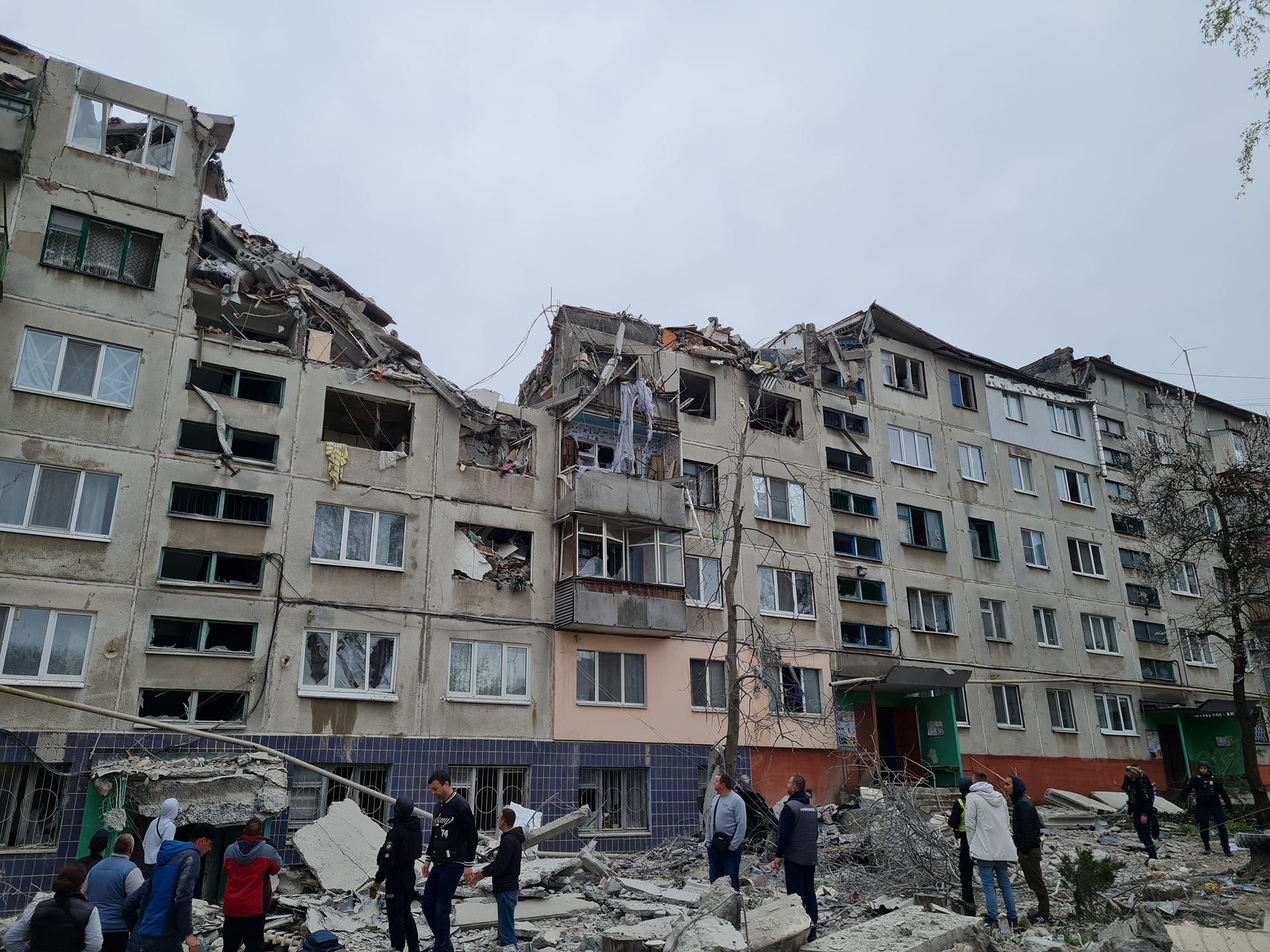Вместе с тем руководитель ОП Андрей Ермак сообщал, что в городе прозвучало по меньшей мере 7 взрывов в районе школы №8. Воздушные цели попали непосредственно в 3 пятиэтажных дома, из-за чего в двух из них занялись квартиры.