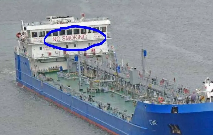 На танкере заглавными буквами призывают не курить / Фото из сети