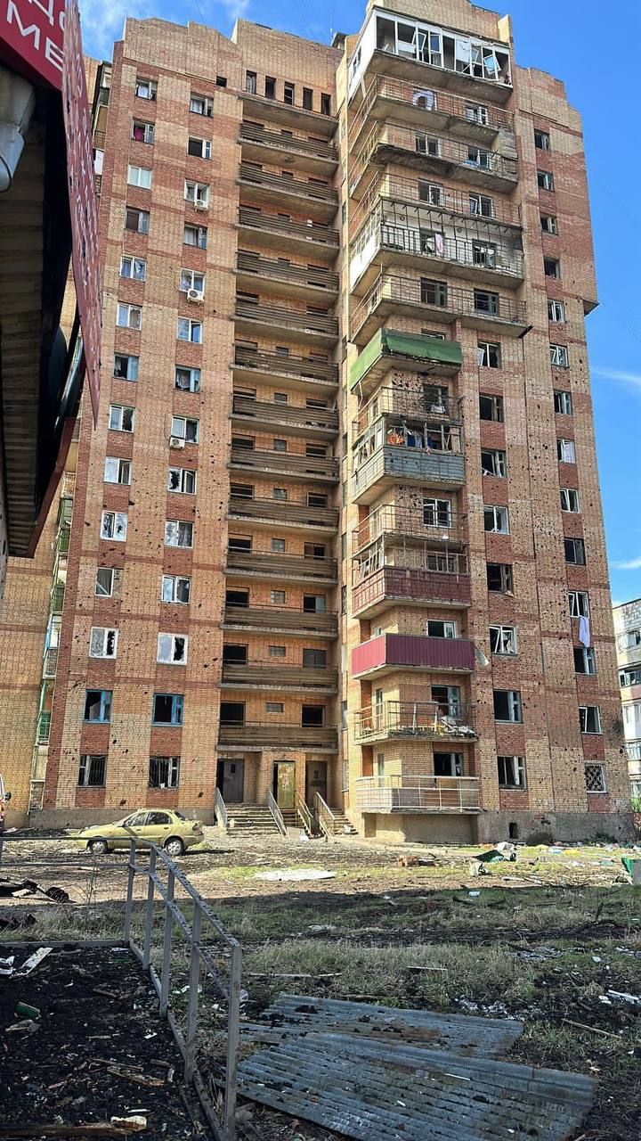 Вражеские снаряды повредили 15 многоквартирных и 11 частных домов, детское дошкольное учреждение, здание Константиновской государственной налоговой, газовые трубы, 3 автомобиля.