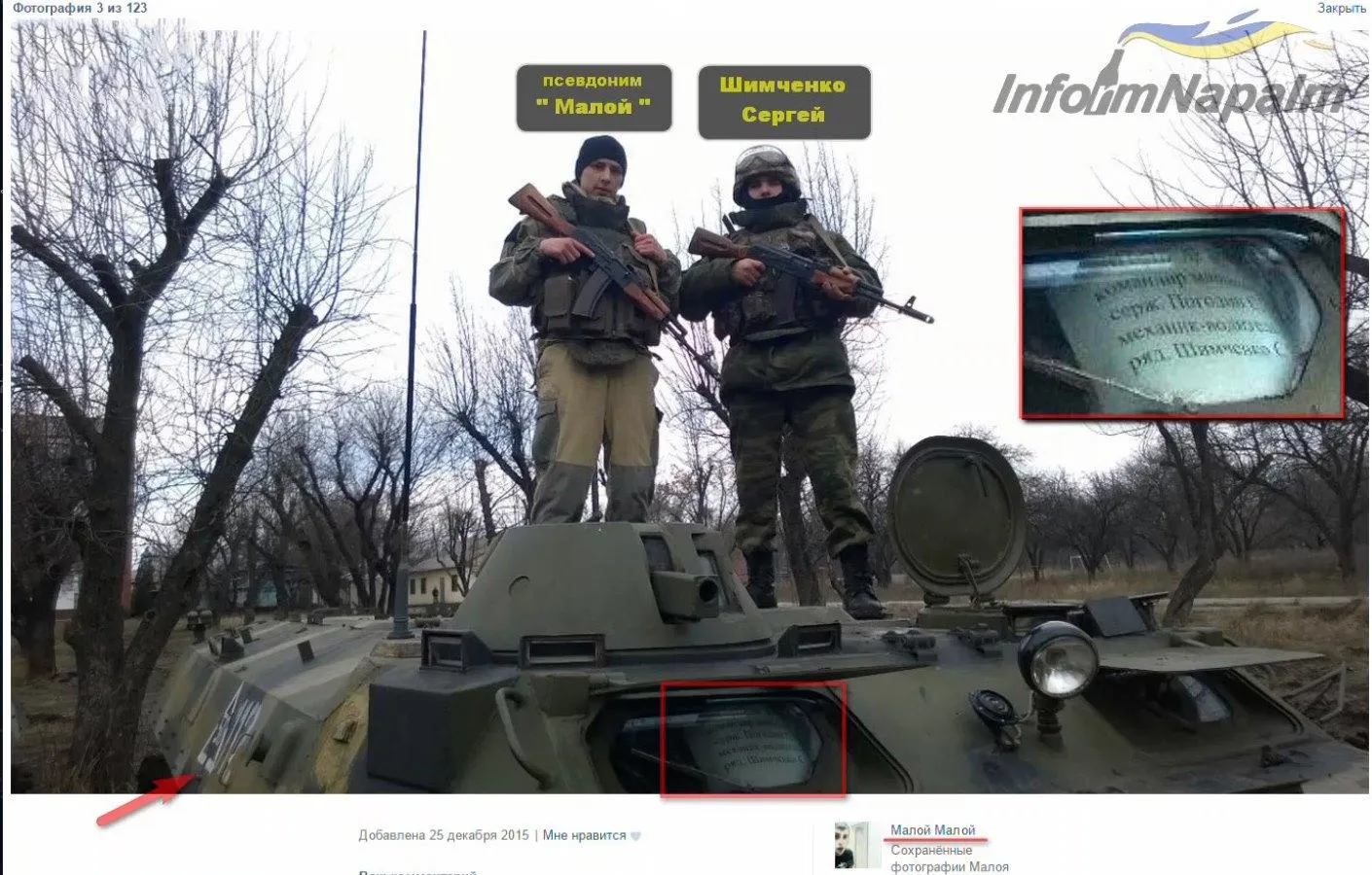 В друзях у терориста по кличці “Малого” виявили військовослужбовця 49 кулеметно-артилерійського полку ЗС РФ Юрія Ісаєва із Казані. У його акаунті є групове фото з "Малим" на блокпосту на в’їзді в Широкине.