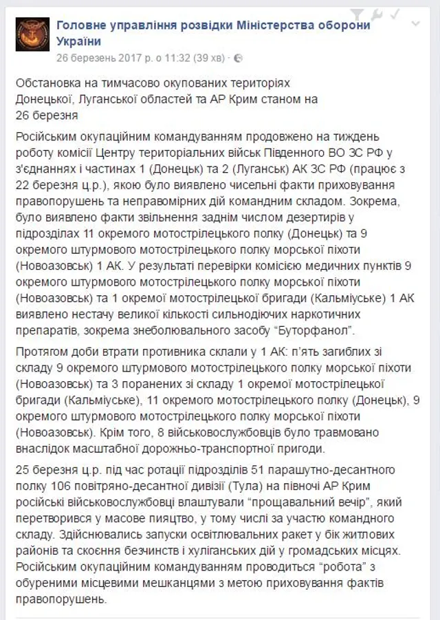 Об этом сообщает пресс-служба Главного управления разведки Минобороны на своей странице в Facebook.