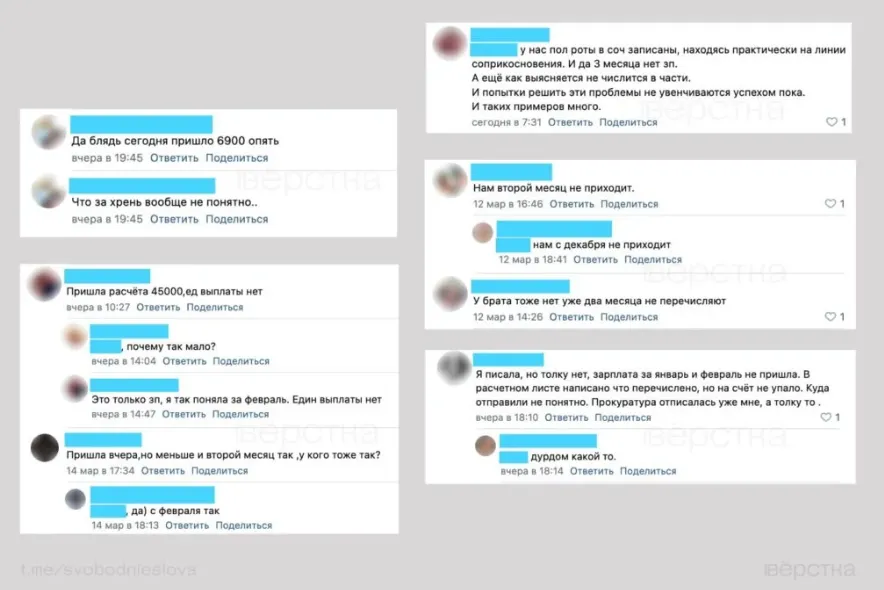 С начала марта 2023 года выплаты задерживали или вообще не платили в 52 регионах России. Контрактники, мобилизованные и добровольцы жалуются, что вместо обещанных 195 тысяч рублей в месяц на счета поступают в разы меньшие суммы.