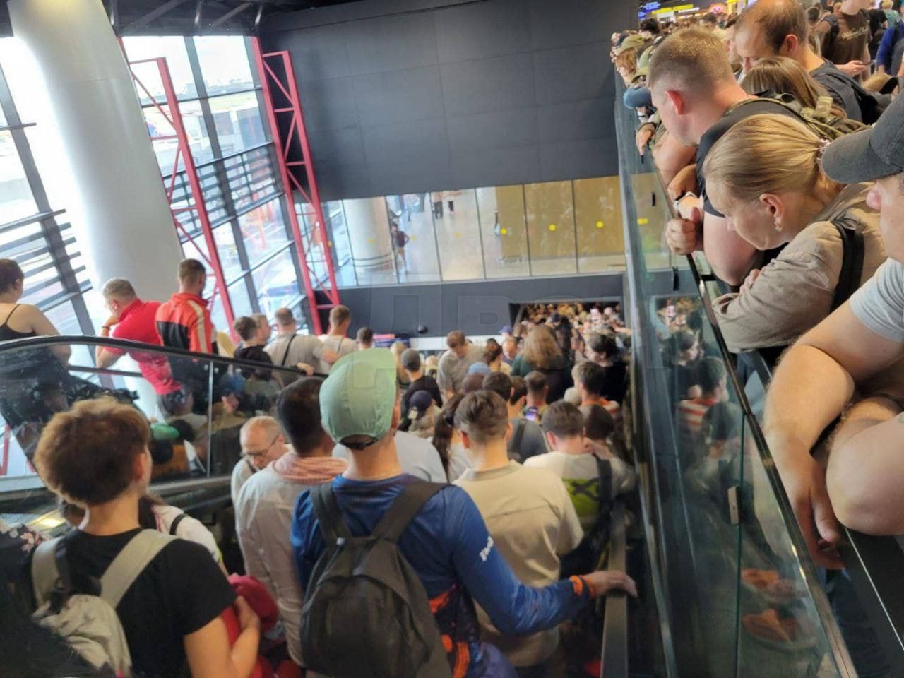В аэропортах Москвы и Санкт-Петербурга вечером 5 июля отменили почти 100 авиарейсов. Трудности в работе аэропортах есть и в других городах страны-агрессора: Екатеринбурге, Нижнем Новгороде, Калининграде.