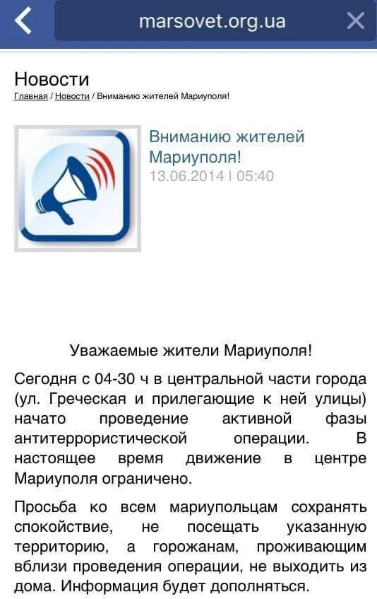 14 апреля 2014 года украинские власти объявили о начале АТО, чтобы вернуть под свой контроль захваченные боевиками города востока Украины. 9 мая колонна 72-й бригады разрушила баррикады, которые сепаратисты поставили в городе и вошла в Мариуполь.