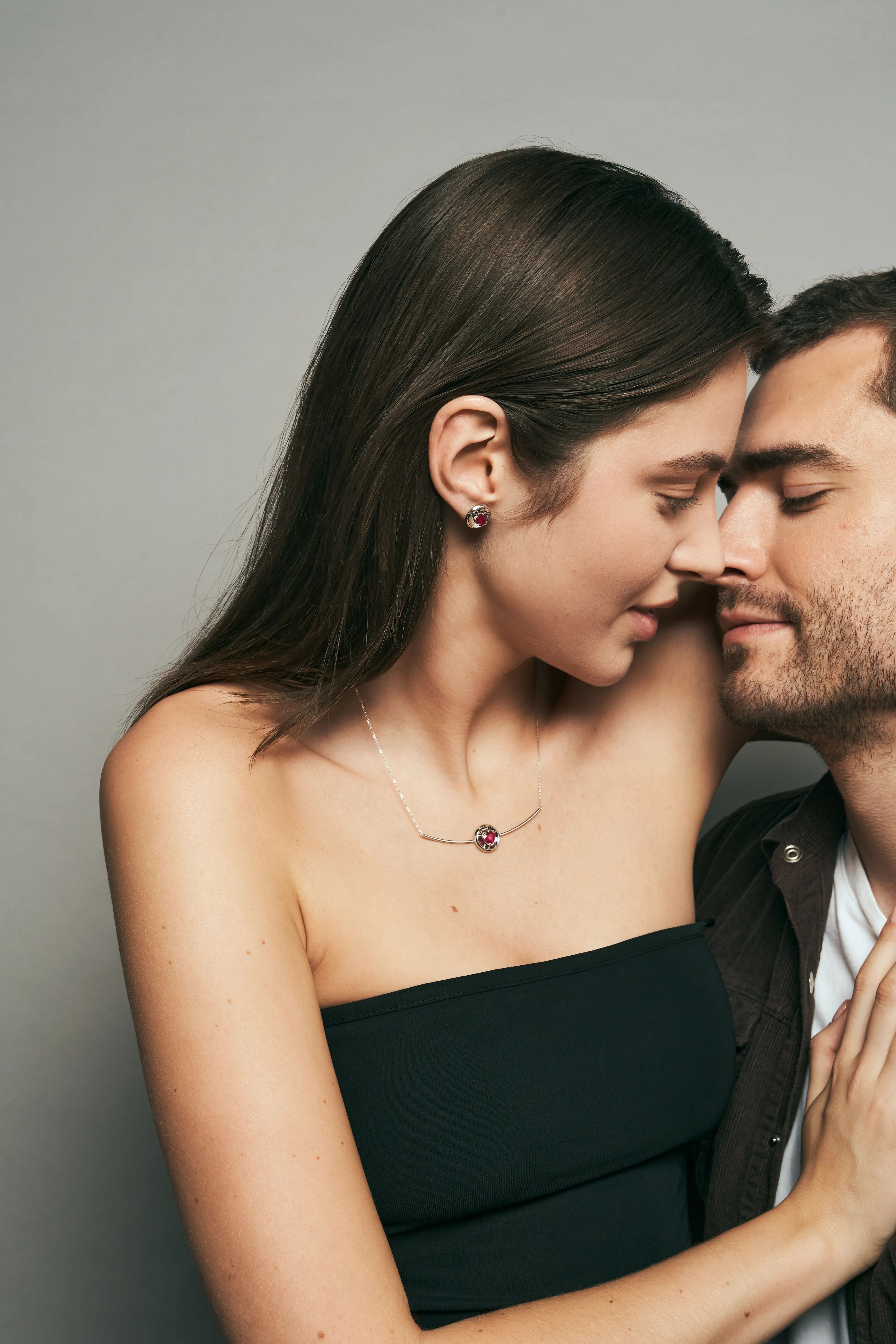 Чтобы добавить украшениям сияния и игры светом, ювелиры SOVA создали основу в виде чаши, в центре которой поместили рубин. Специальный каст, держащий рубиновое сердечко, позволяет яркому красному цвету камня отражаться на поверхности белого золота, будто в зеркале, наполняя конструкцию украшения цветом.