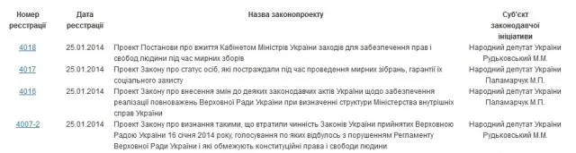 Информация о регистрации этих законопроектов присутствует на сайте Верховной Рады Украины (по 25 января), правда, тексты документов пока отсутствуют.