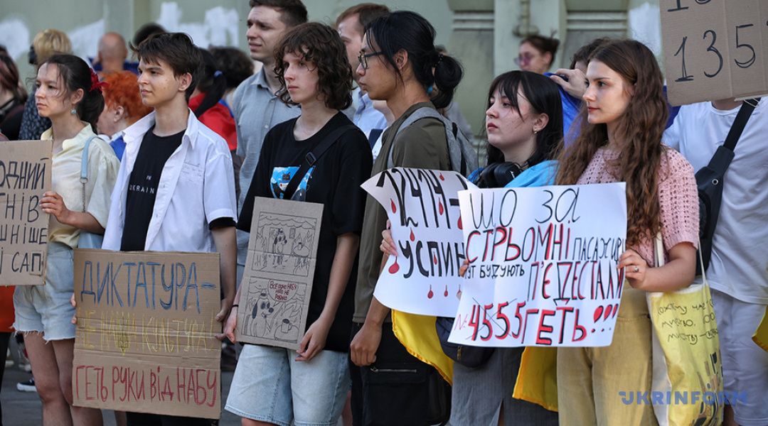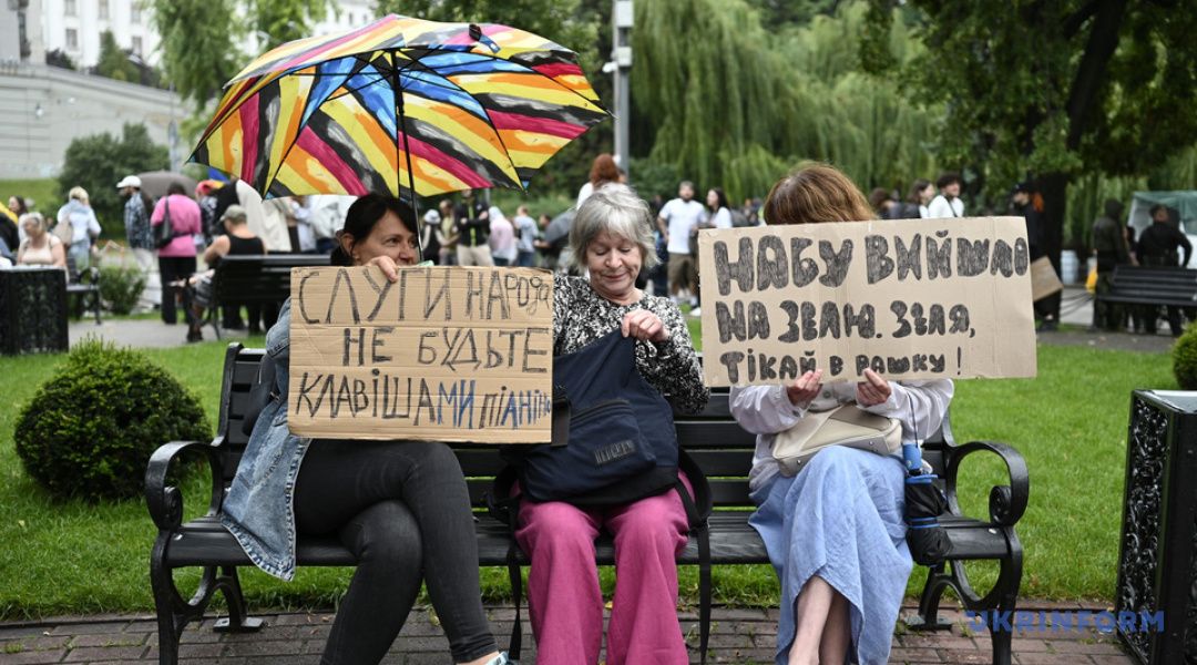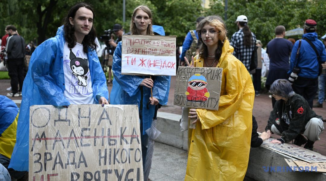 В десятках городов граждане выражают протест против закона, подписанного Зеленским 22 июля, который фактически ограничил независимость НАБУ и САП.