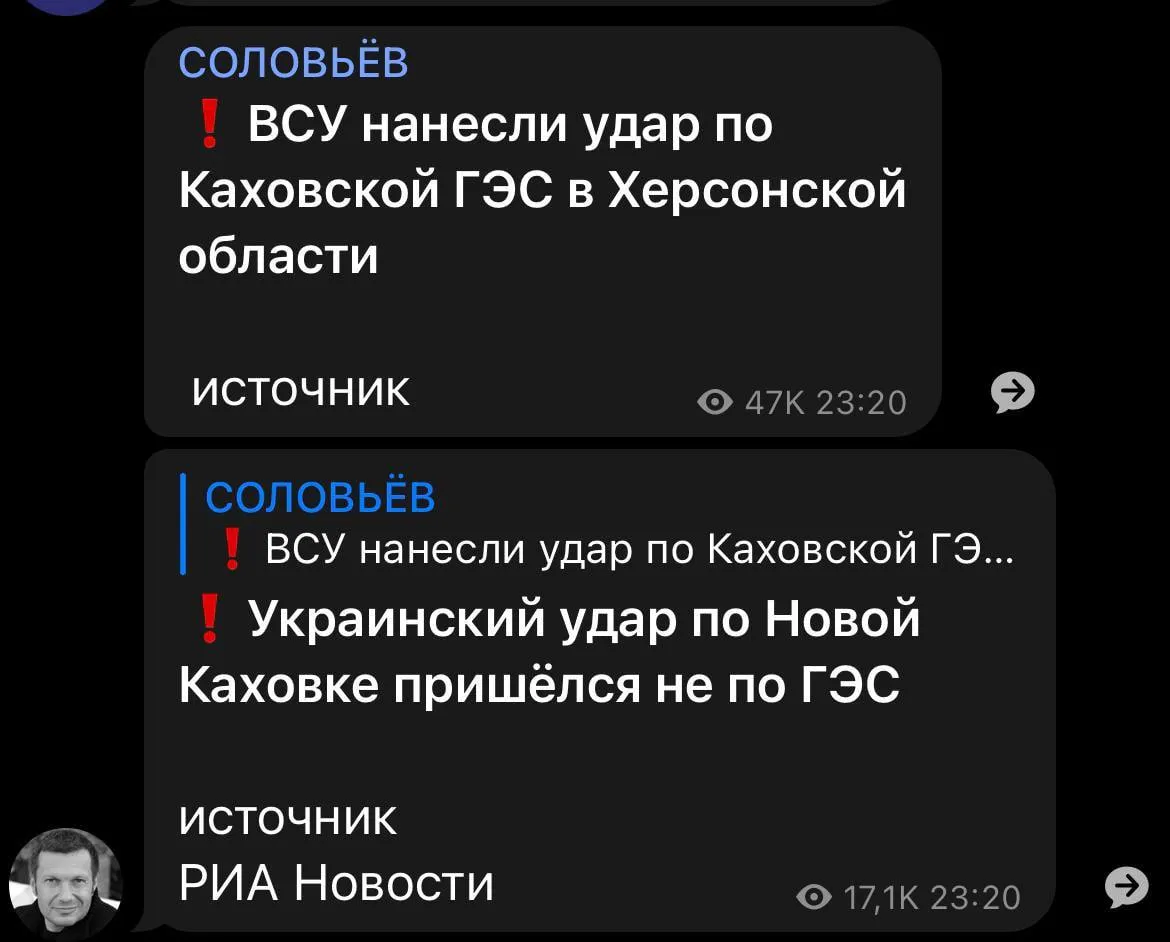 В то же время российские пропагандисты продолжают беззастенчиво врать, хотя в их "истории" со временем верит все меньше людей, но в этот раз они заявили, что ВСУ ударили по жилым домам и Каховской ГЭС. Распространяют эту информацию сознательно, ожидая тех, кто готов воевать против Украины.