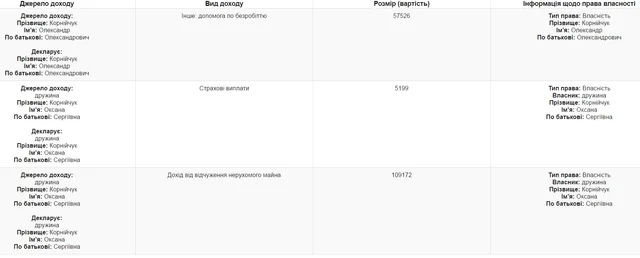 За 2015 год Корнийчук получил в виде пособия по безработице 57 526 гривен. Эту сумму он указал в своей электронной декларации.