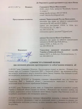 Саакашвили отмечает, что его адвокаты обжаловали в суде решение Государственной миграционной службы в Киевской области "Об отказе Н. Саакашвили в оформлении документов для решения вопроса о признании лицом, которое нуждается в дополнительной защите".