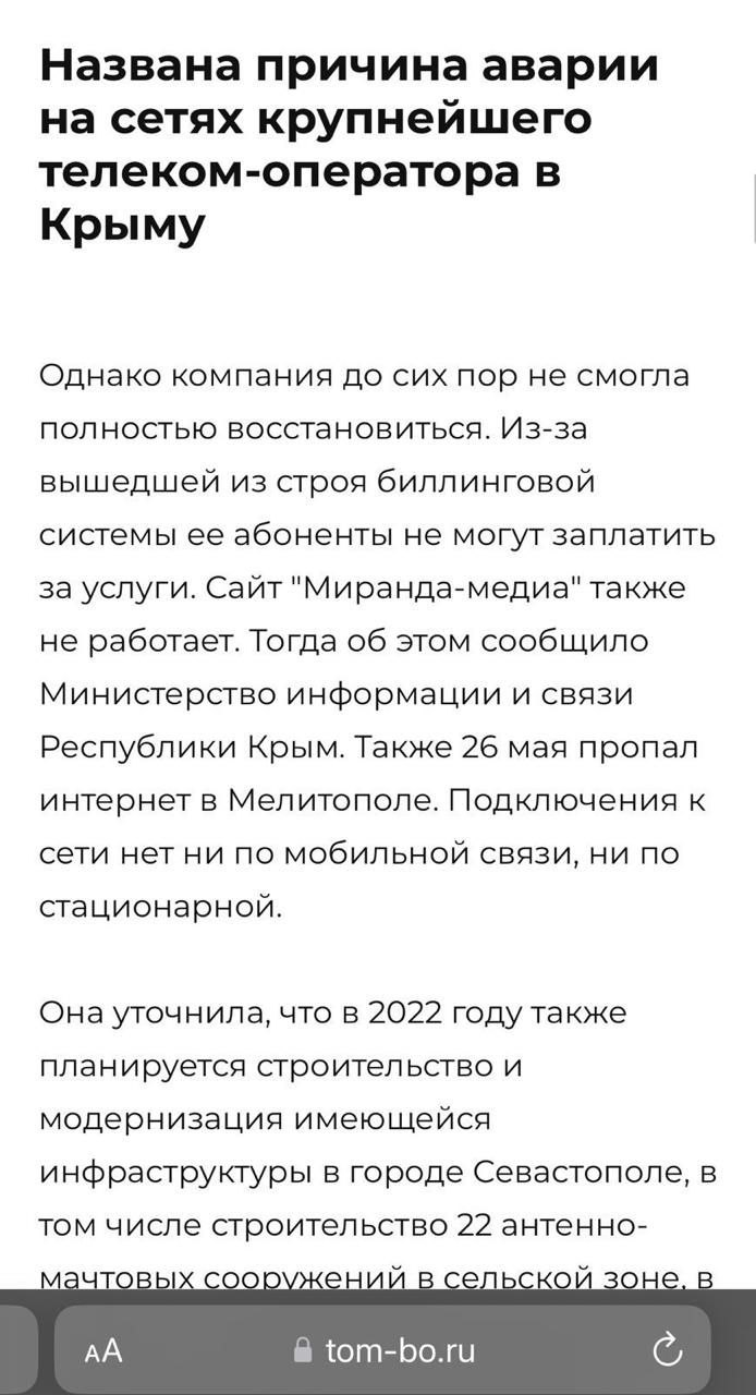 Это привело к прекращению работы кассовых аппаратов в ряде городов оккупированного Крыма, задержке многих авиарейсов и возникновению значительных пробок на Крымском мосту.