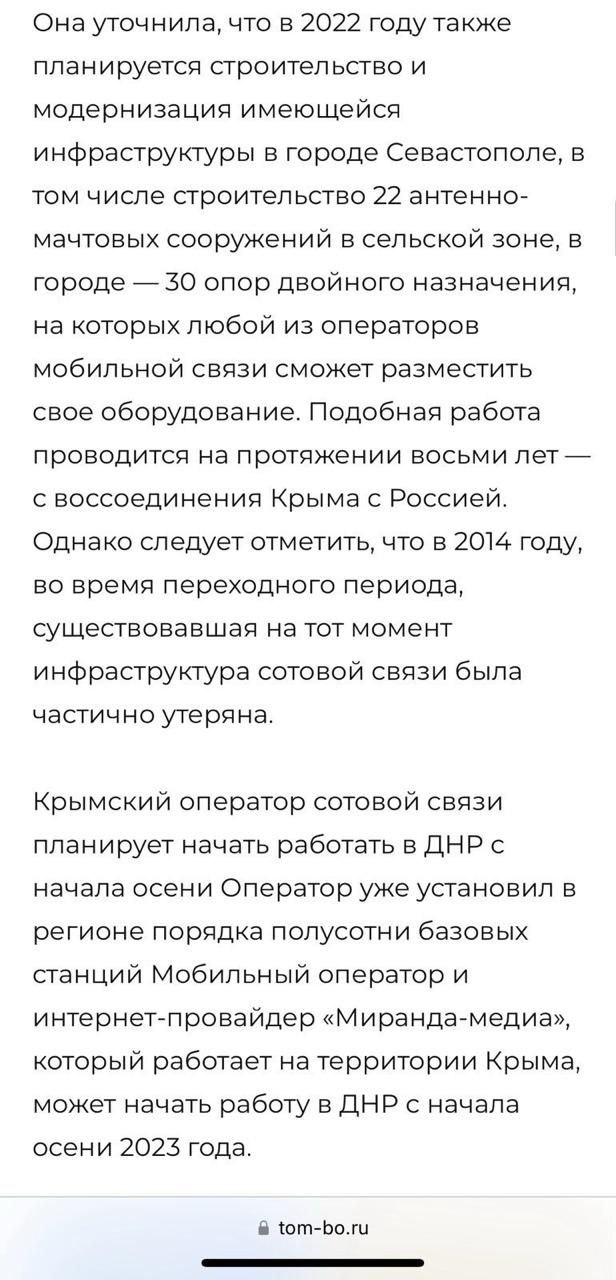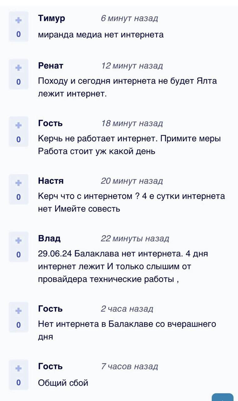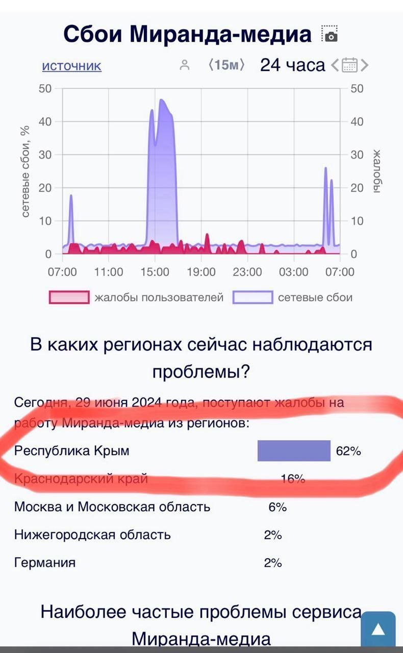Пользователи "Миранда-медиа", работающей под брендом "Миртелеком" на оккупированных территориях, не имели доступа к сети в Крыму, на временно оккупированных территориях Запорожской и Херсонской областей. Также значительное поражение получили сети российского провайдера "Фарлайн", преимущественно в Крыму.