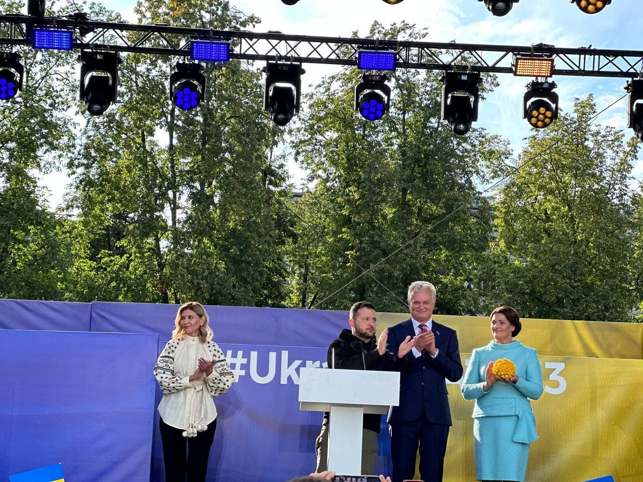 Он поблагодарил всех, кто находится на площади и международных партнеров. Особенно Литву, которая всеми силами поддерживает Украину в войне и продвигает ее вступление в НАТО.