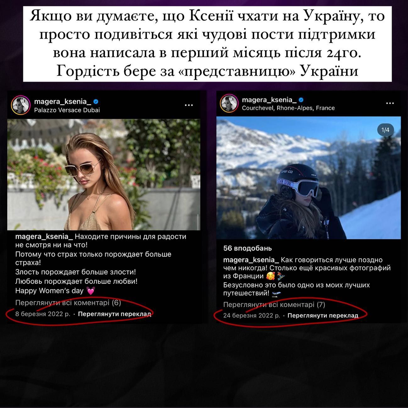 В августе организаторы конкурса "Мисс Украина" представили список участниц конкурса и скандал не заставил себя ждать. Блогер Андрей Лузан обнаружил, что три участницы "Мисс Украина" имеют связи с Россией. Среди них девушка №10 – Оксана Магера. Судя по ее фото, до 2022 года девушка проживала в Москве и даже участвовала в конкурсе "Будущее России". Сейчас она живет в Дубае, где ходит в рестораны российских олигархов. На странице Оксаны почти нет упоминаний о полномасштабном вторжении, особенно в первые месяцы.