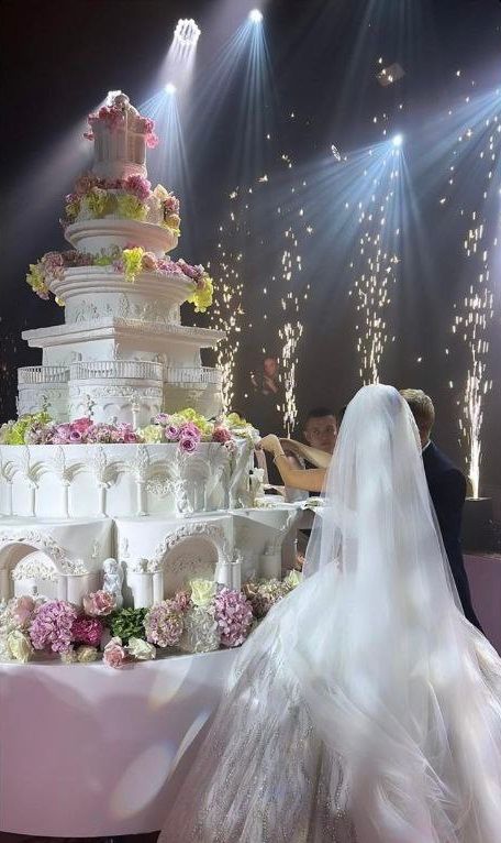 Молодожены заказали гигантский торт, стоимость которого точно неизвестна, однако по оценкам кондитеров составляет около 100 000 гривен. А ведущий праздника Григорий Решетник заявил, что "сегодня гуляет вся Украина".
