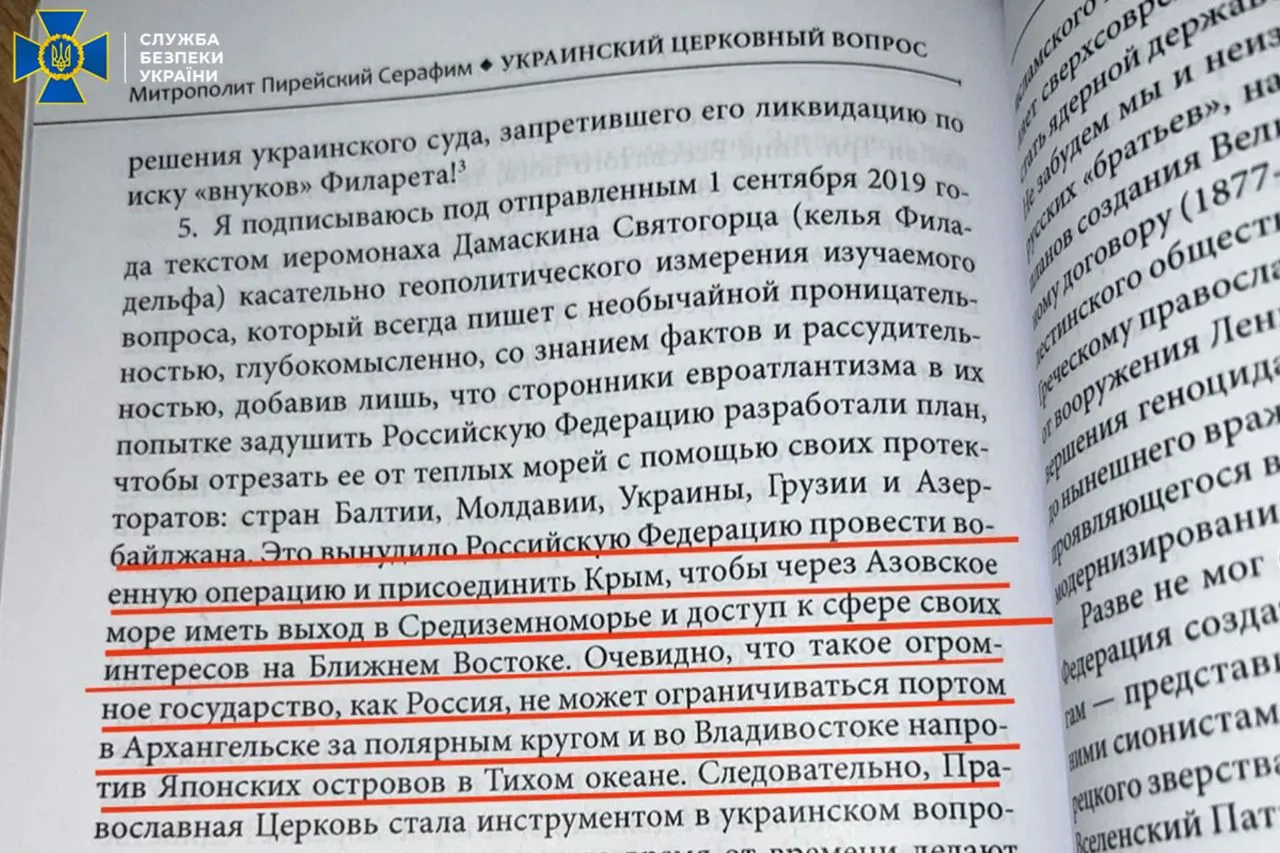 У фигурантов дела обнаружили переписку митрополита Кировоградского и Новомиргородского с патриархом Московского патриархата Кириллом и изъято большое количество изготовленных в России антиукраинских материалов.