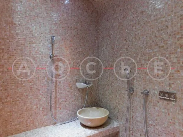 Ванная комната украшена плиткой и оснащена турецкой паровой баней и душем.