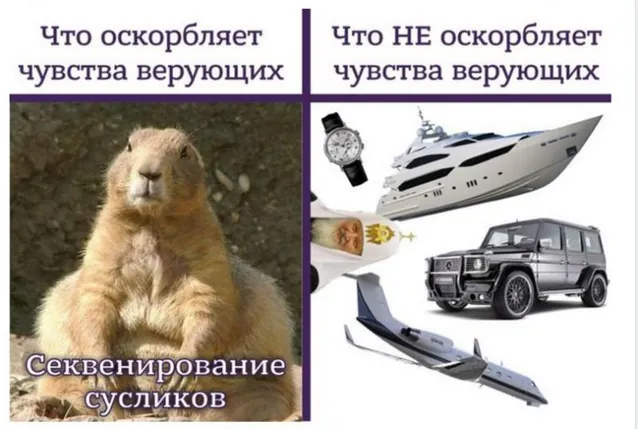 Более того их обижают даже шутки в отношении лидеров РПЦ, которые уже не столько шутки, как ирония и сарказм. Мол, классный Патриарх, людям советует жить скромно, а сам отдыхает на яхте.