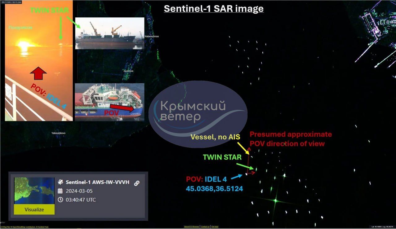 OSINT-аналитики установили координаты места, где "Сергей Котов" сделал последний "бульк". Как пишет мониторинговая группа "Крымский ветер", проанализировав эти данные, "Котов" затонул в 8 километрах от побережья Крыма. Ближайшие к месту затопления корабля населенные пункты Крыма – села Заветное и Яковенково.