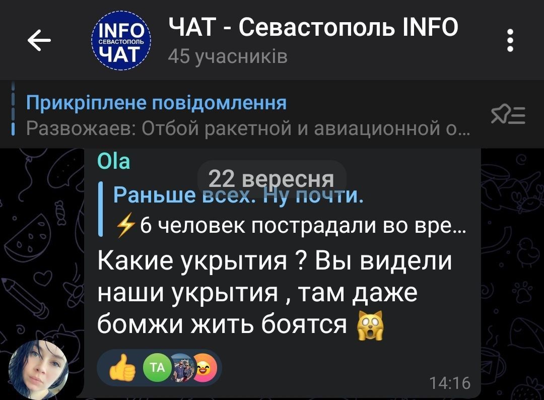 Кроме истерики из-за атаки, россияне в Крыму также паникуют из-за укрытия. Оккупационные власти Севастополя после атаки рекомендовали гражданам пройти в укрытие, впрочем, эту идею не поддержали. Некоторые пользователи начали истерить, что укрытия давно заброшены и в них "боятся заходить даже бездомные".