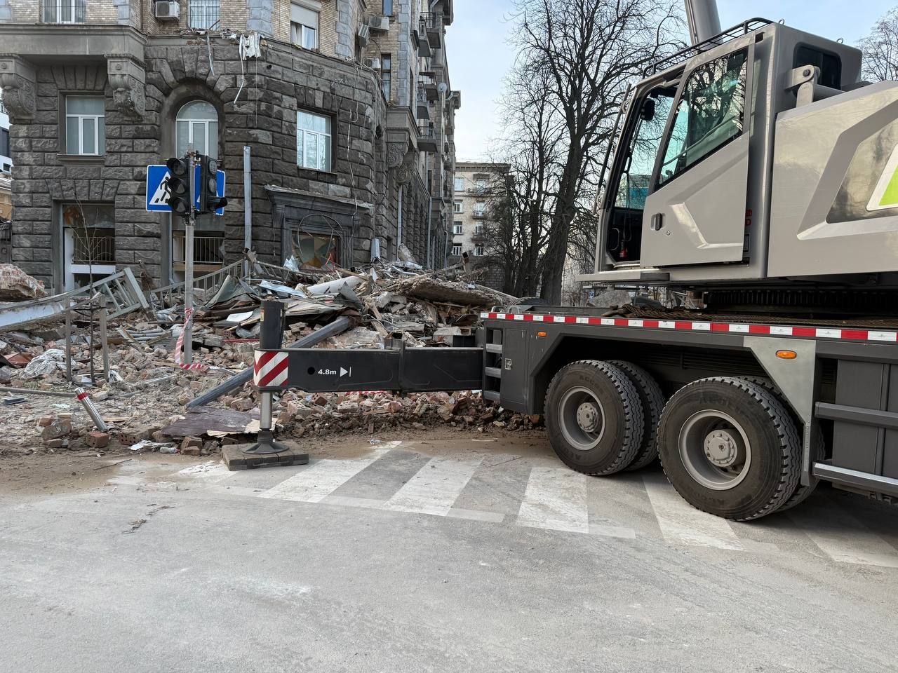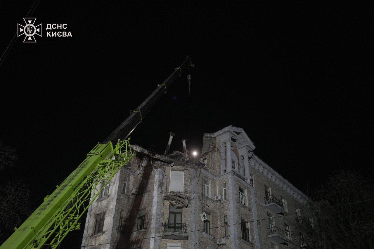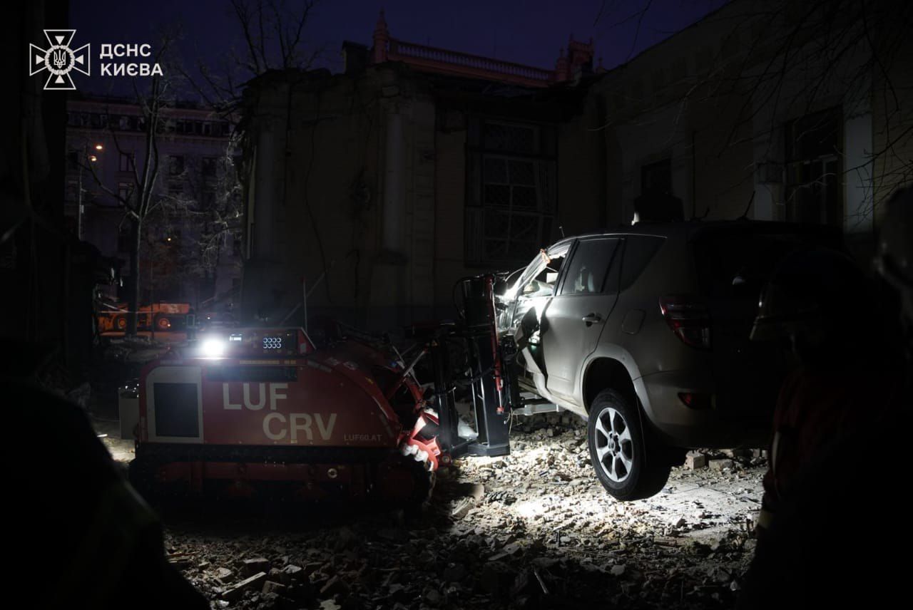 В ГСЧС указали, что спасатели продолжают работать на месте вчерашнего российского обстрела в Печерском районе столицы.