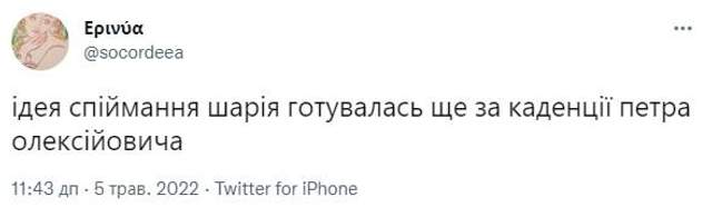 СБУ, распространившая новость, стала силой, способной наказать преступников. Шария же традиционно изображают в образе сдувшегося петуха и шарика. Один из таких мемов, кстати, распространил Сергей Притула.