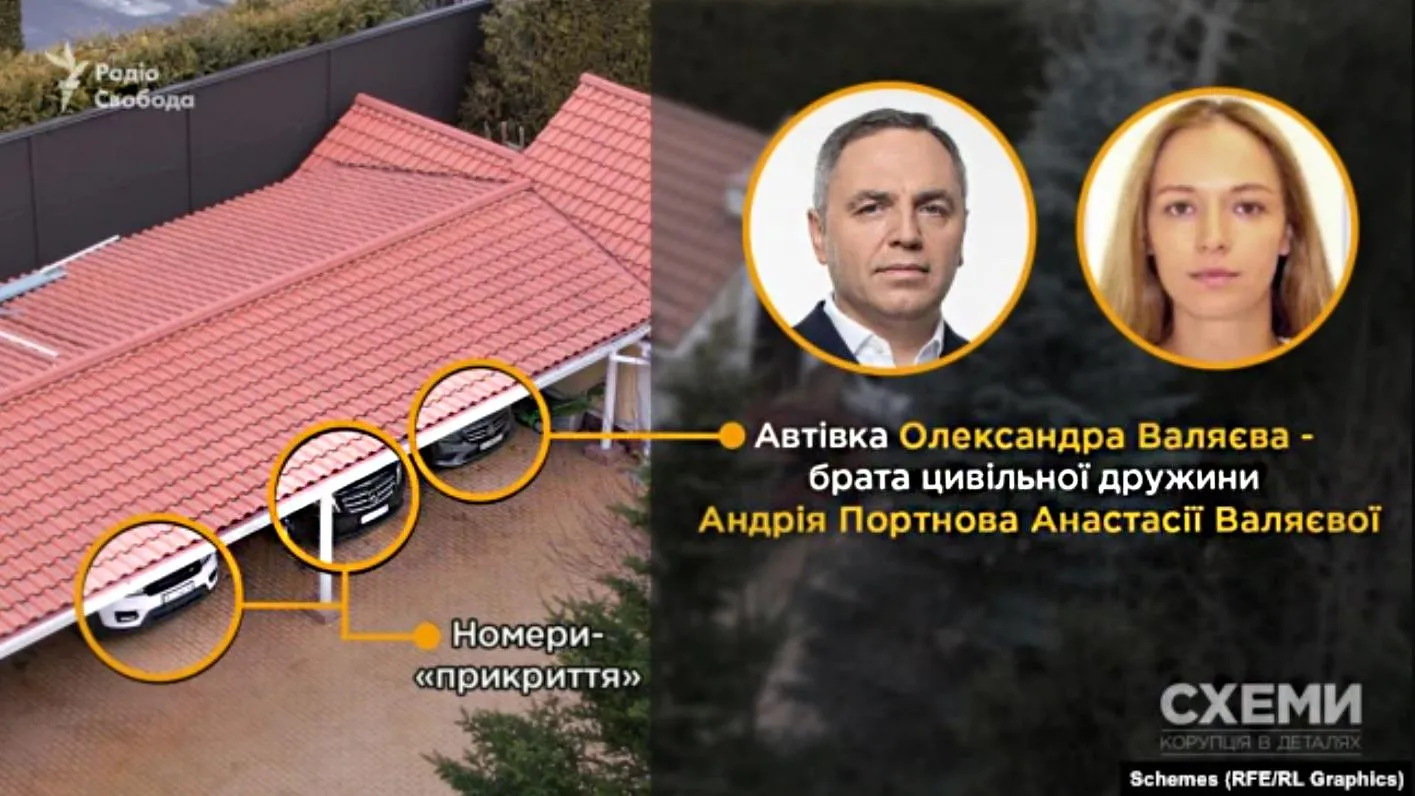Один из обнаруженных там автомобилей принадлежит брату гражданской жены Портнова – Анастасии Валяевой. А вот с двумя элитными машинами у поместья все труднее. Они были оснащены так называемыми "номерами прикрытия", которые очень плохо видны издалека. Однако расследователи акцентировали на том, что такие же модели есть в собственности: