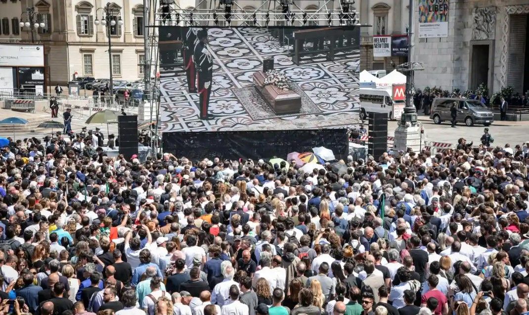 Церемония прощания с бывшим премьером проходила в Кафедральном соборе Милана в среду, 14 июня. На площади собрались тысячи поклонников Берлускони, которые также пришли провести его в последний путь.