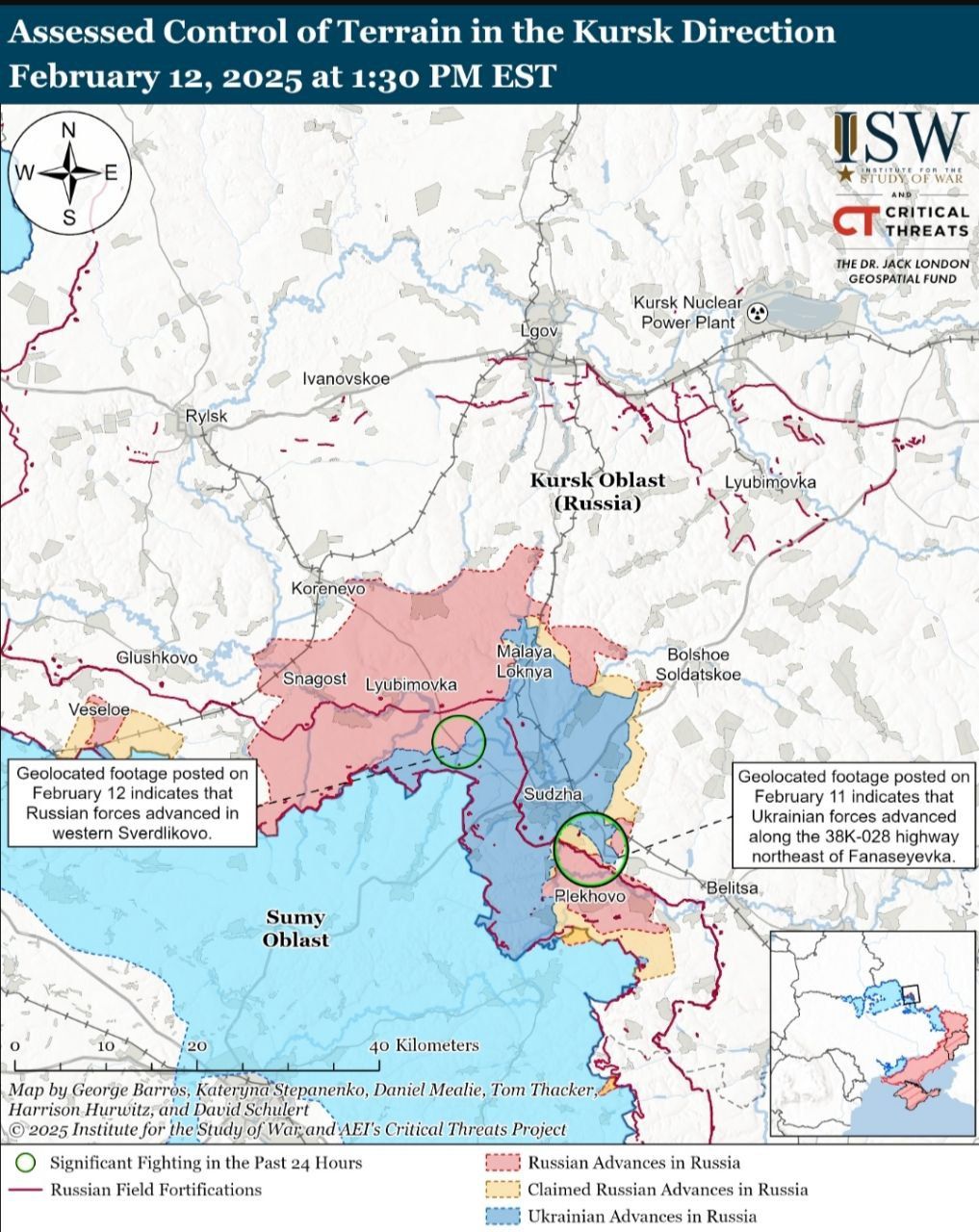 В Институте изучения войны рассказали, какие изменения произошли на фронте 12 февраля. Об этом сообщает 24 Канал со ссылкой на ISW.