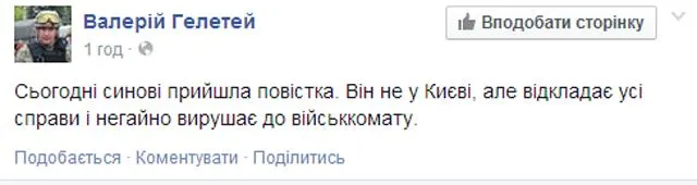 Сегодня сыну пришла повестка. Он не в Киеве, но откладывает все дела и немедленно отправляется в военкомат,