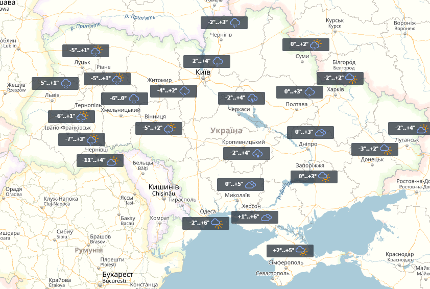 В Днепре в субботу облачно. Температура ночью 0 °, днем + 3 °. В воскресенье пройдет мокрый снег, температура воздуха -3 ° ... + 1 °.
