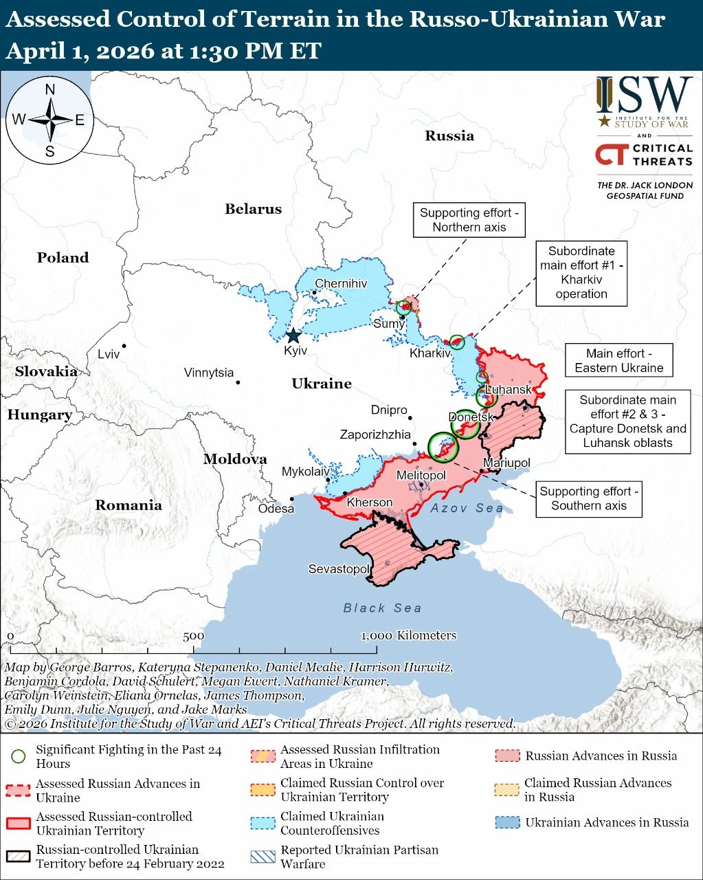 Об этом говорится в новом отчете Института изучения войны (ISW) по состоянию на 1 апреля 2026 года.
