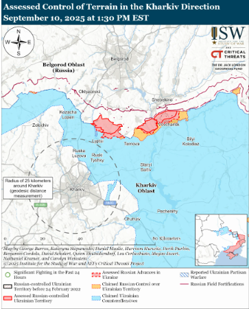 10 сентября российские войска продолжили наступательные операции на севере Сумской области, а также атаковали на Курской области. Атаки были зафиксированы вблизи Безсаловки, Андреевки, Алексеевки, Кондратовки, Садков, Юнаковки, а также Теткино.