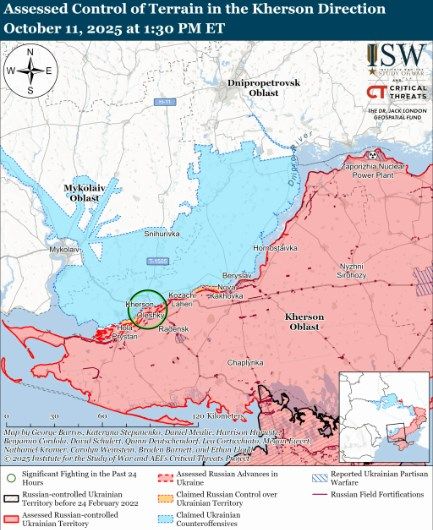 За прошедшие сутки ISW писал, о частичном продвижении российских войск на Лиманском направлении, в частности у Ямполя.