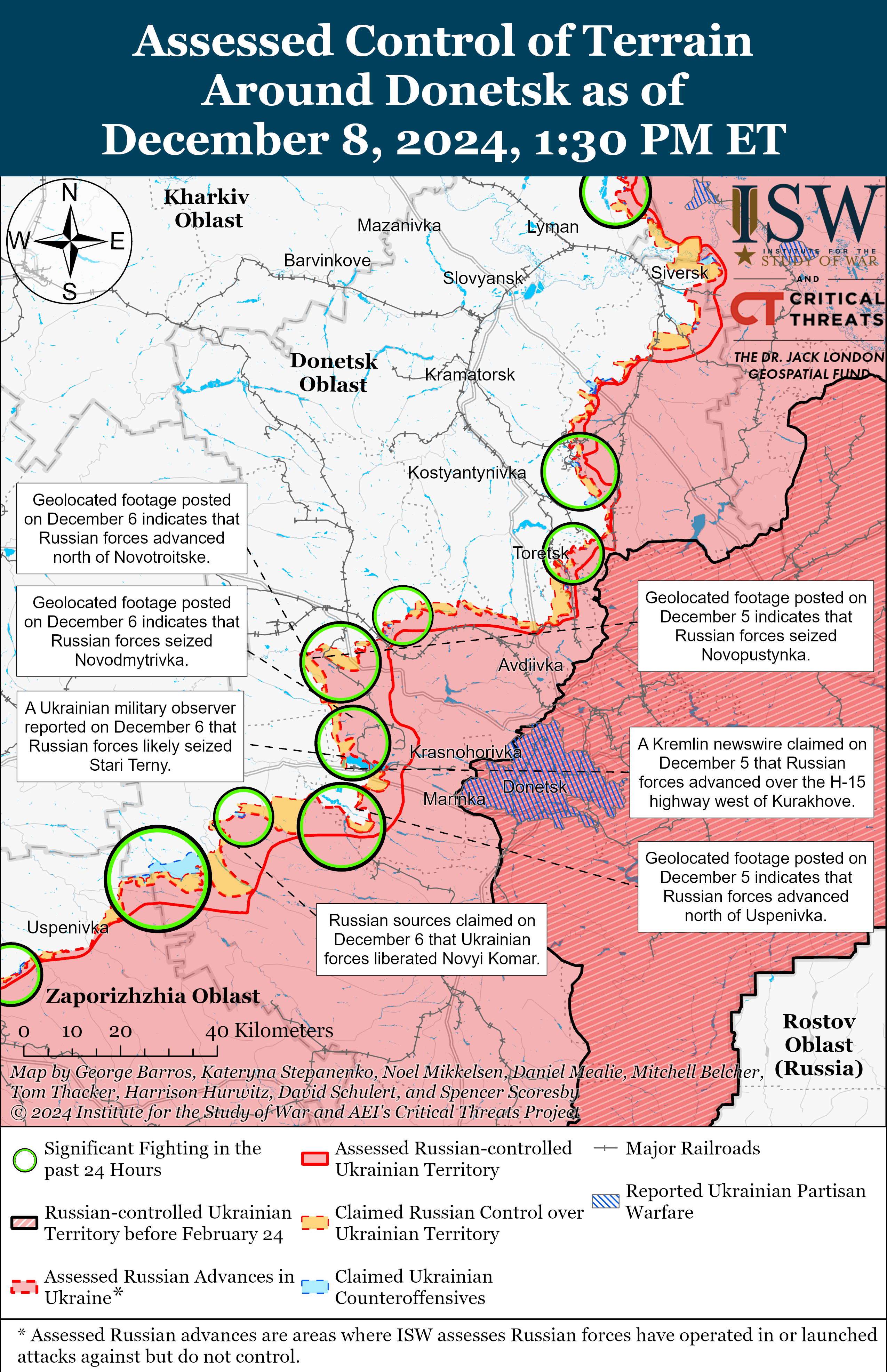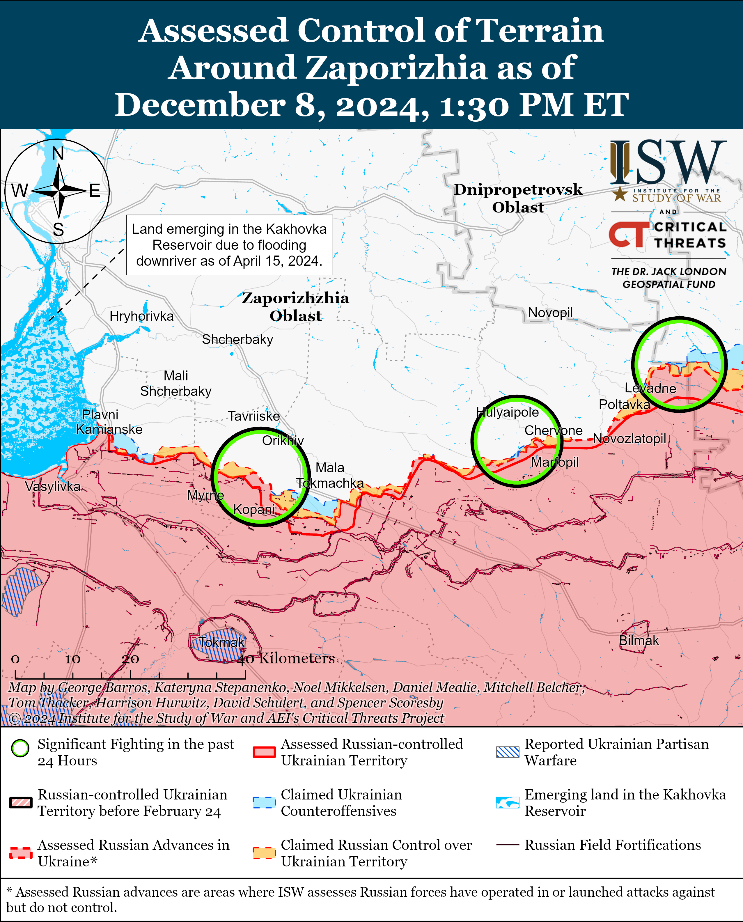 - Российские войска 7 и 8 декабря также проводили наступательные действия на западе Запорожской области – возле Нестерянки и Новоданиловки. Подтвержденных продвижений там нет.