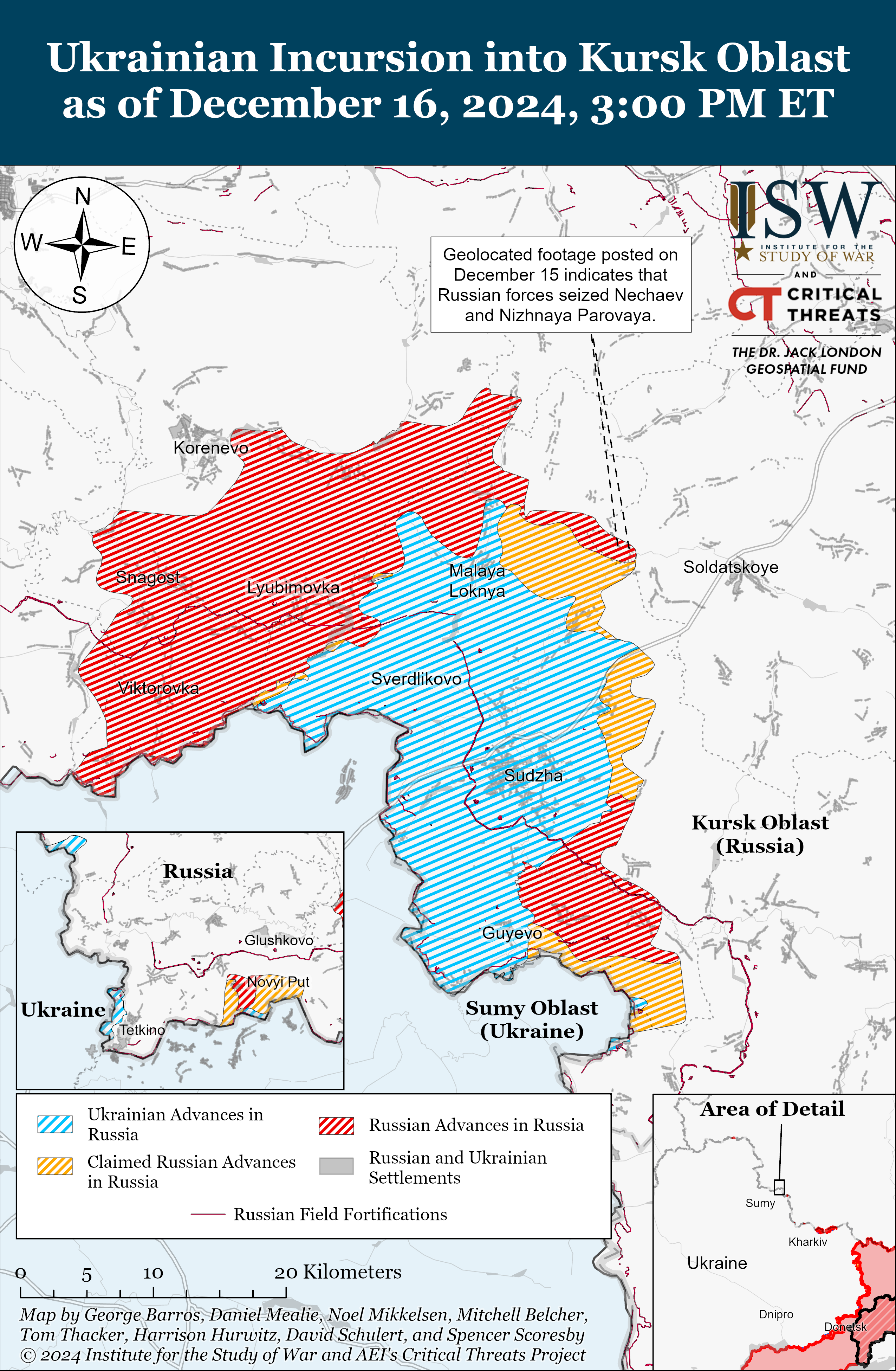Российские войска, вероятно, недавно продвинулись в полях к юго-западу от Нечаева. Также они, вероятно, захватили Нечаев и Нижнюю Паровую.