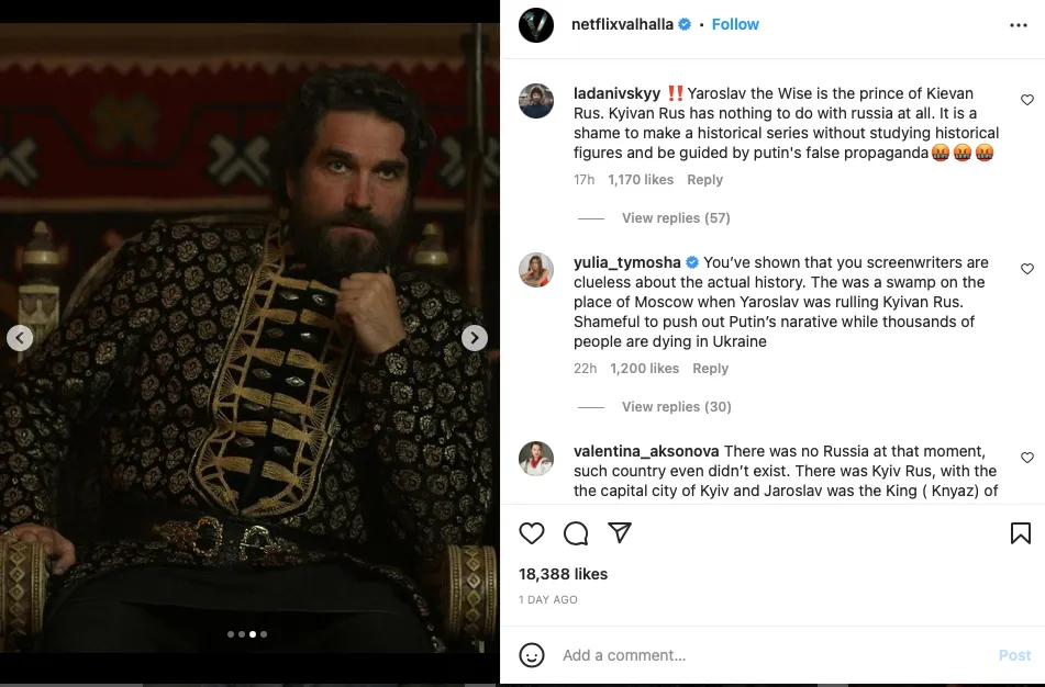 Комментаторы атакуют страницу Netflix и рассказывают кинематографистам о "Киевской Руси" / скриншот
