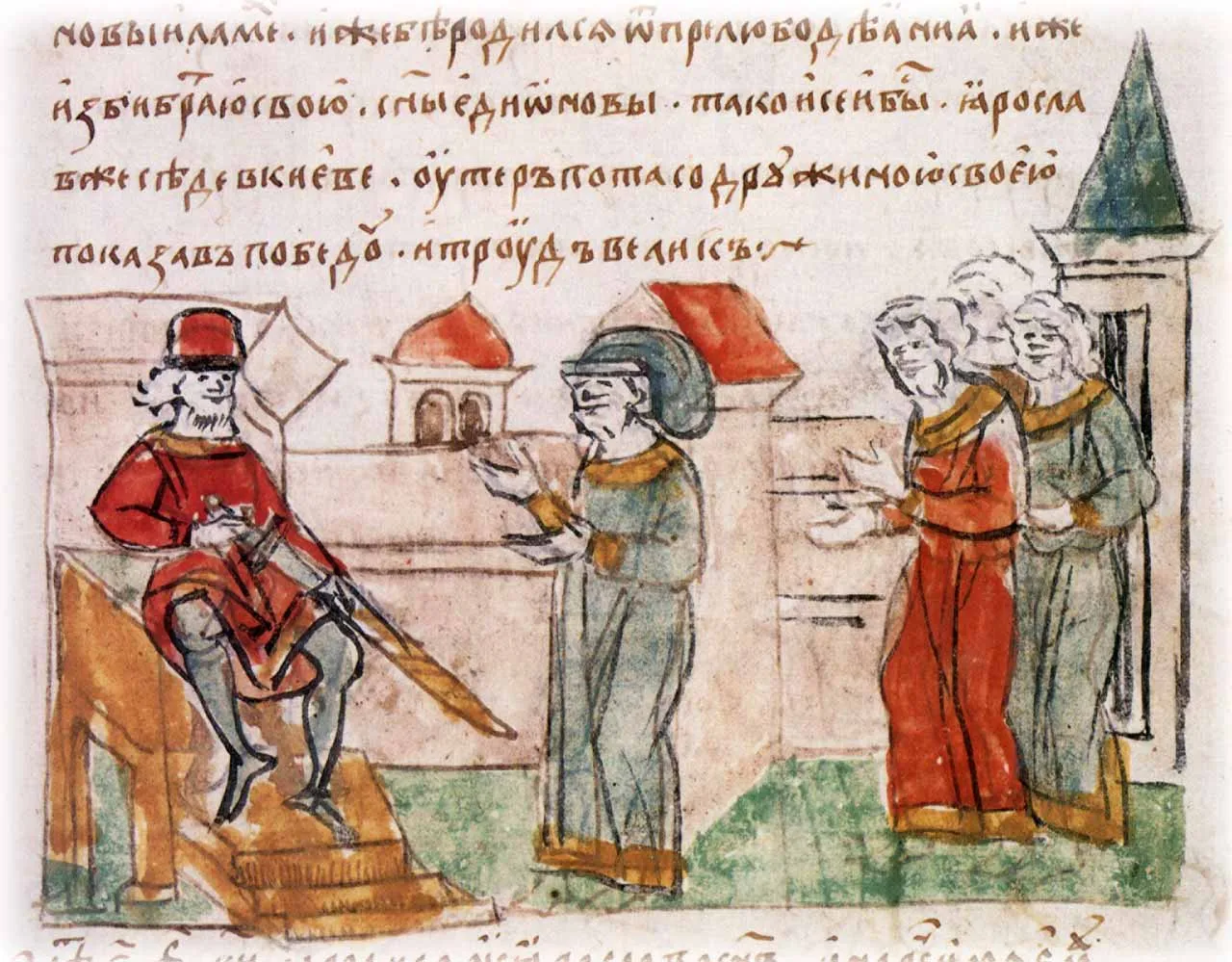 Миниатюра из Радзивиловской летописи 15 века представляет князя Ярослава Мудрого