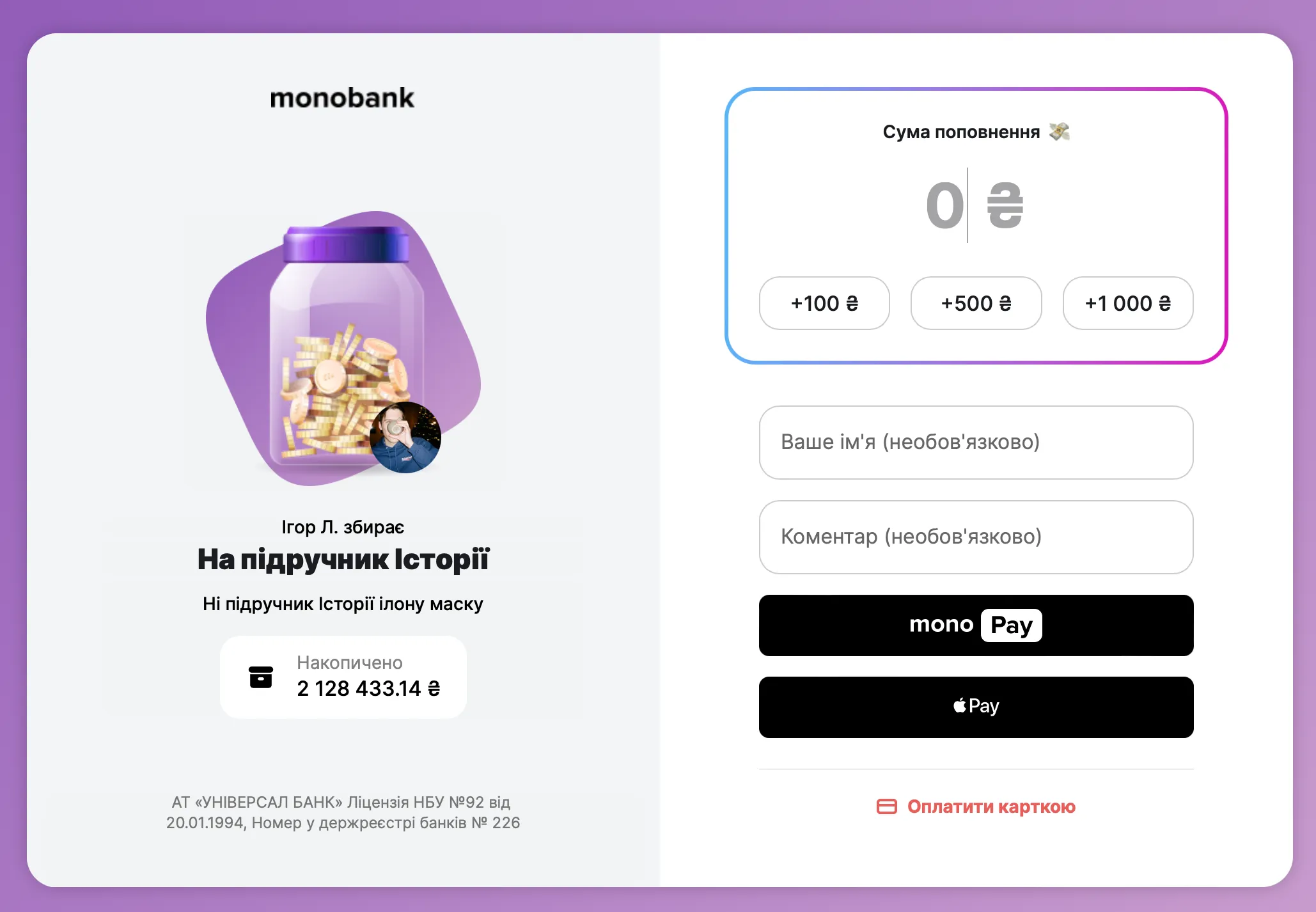 Сергей Притула добавил, что украинцы знают историю, а также ценят свое будущее. Так что решил от всего нашего общества сделать подарок Московии. Он вместе с блогером и волонтером Игорем Лаченковым открыли сбор средств на учебник по истории для миллиардера. К моменту написания новости на него уже собрали более 2 миллионов гривен.