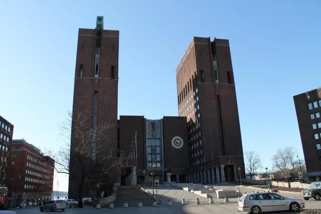 Після однієї-двох годин прогулювань по місту розумію, що час від часу потрібно буде шукати місце, щоб зігрітись і перевести дух. В Макдональдс я встигну завжди. А зараз це буде будинок міської ради Осло. Сюди без проблем можуть зайти туристи, походити відчиненими урочистими залами, стіни яких бачили найпочесніших гостей з усього світу. А сама будівля здається дуже типово скандинавською - простотою, просторовим вирішенням і кольором. Або це я просто так собі фантазую.