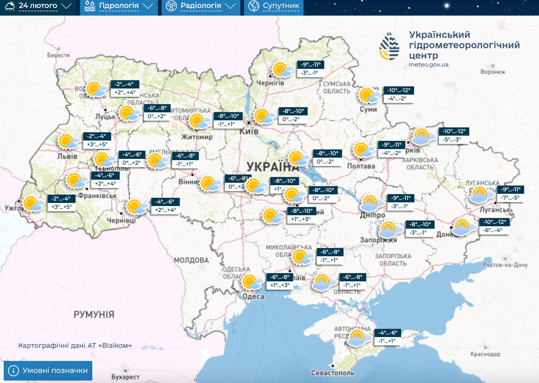Прогноз погоды на 21 – 25 февраля / Скриншот с Укргидрометцентра
