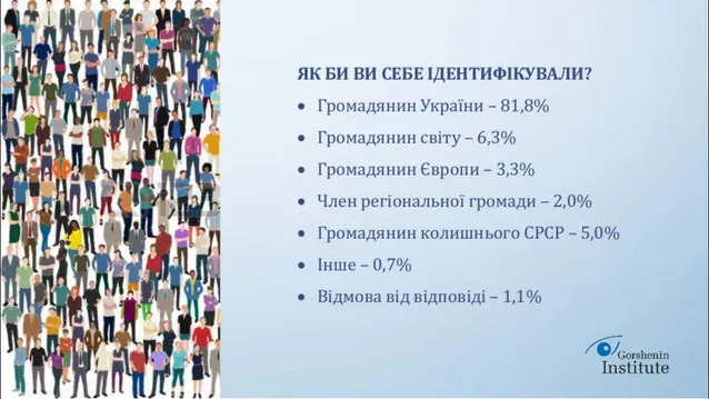 Девять из десяти респондентов (92,6%) считают себя украинцами, каждый двадцатый (5,5%) – русским.