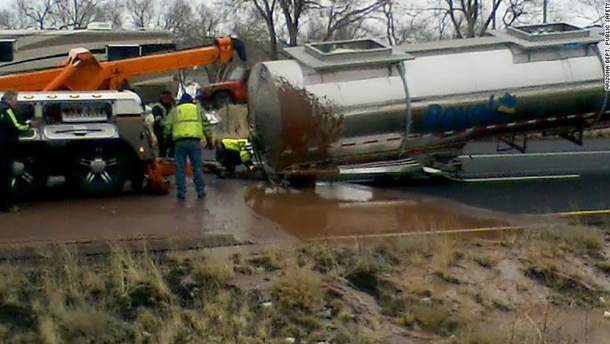 Река шоколада течет в западном направлении на трассе I-40 на восток от Флагстаффа и блокирует дорогу. Уборка обещает быть сладкой,