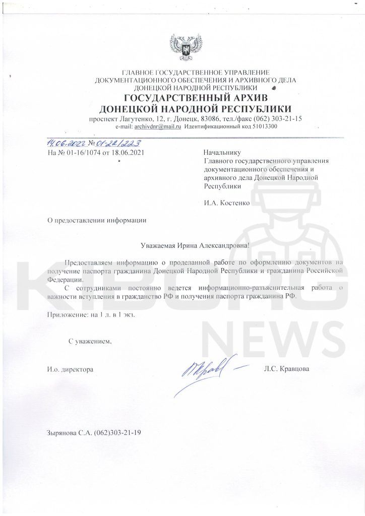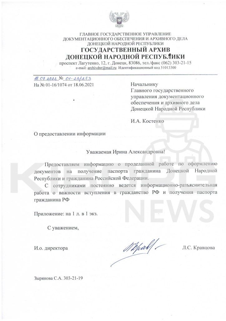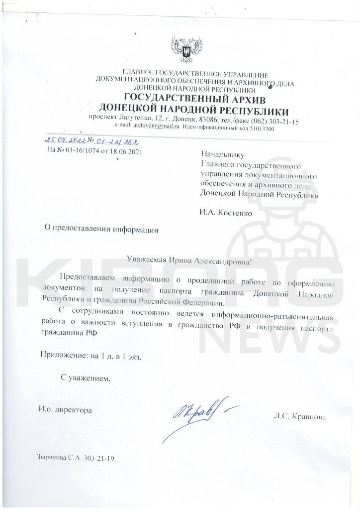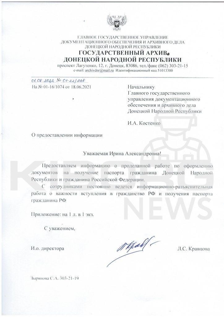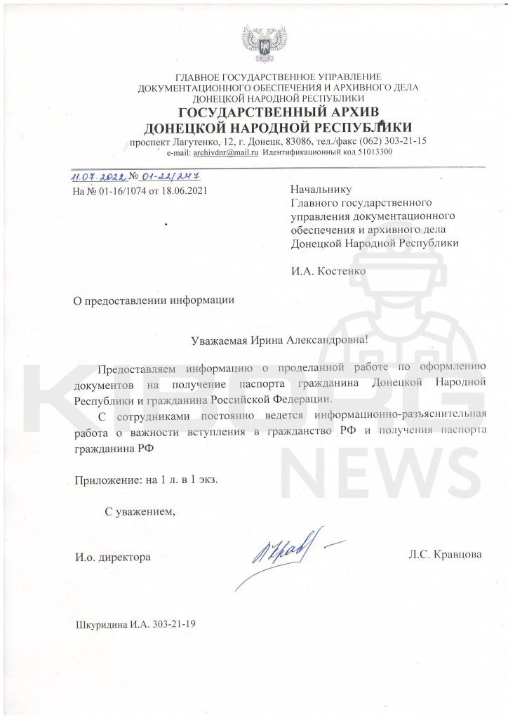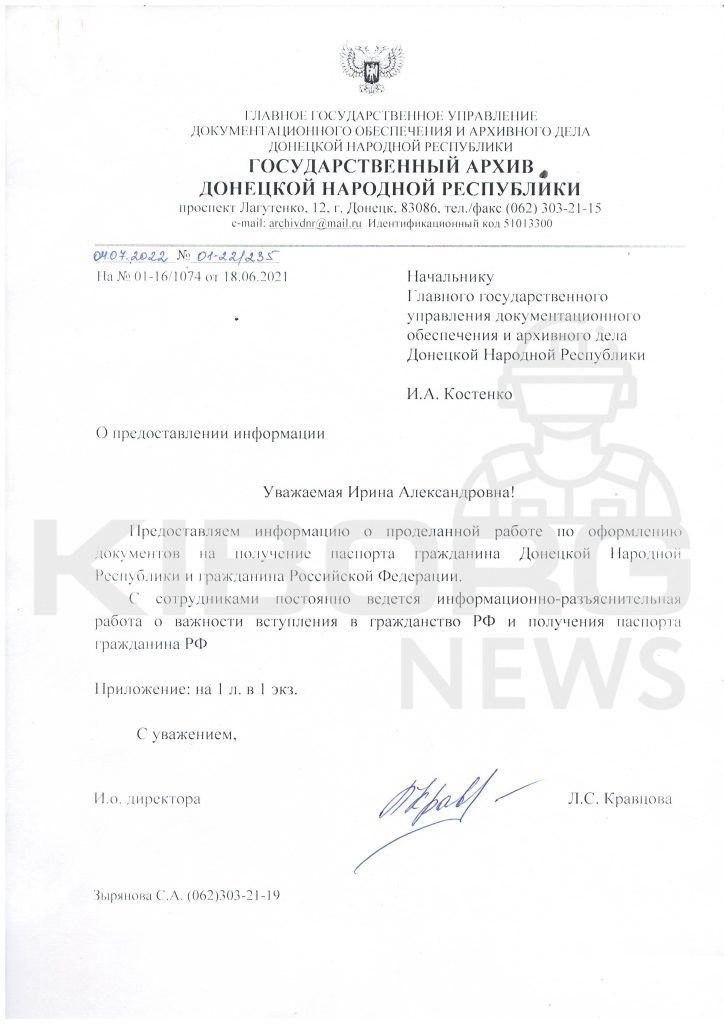 В документации архива чаще всего встречаются отчеты о проведенной работе по оформлению паспортов граждан псевдореспублики и России. Отмечается, что с работниками ведется постоянная информационно-разъяснительная работа по важности приобретения российского гражданства.