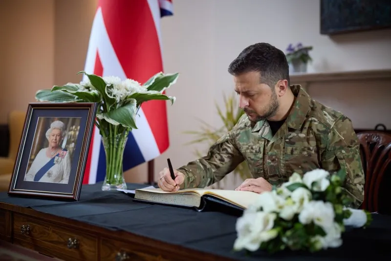 Зеленский сделал запись в книге скорби и возложил цветы на территории резиденции. Также он выразил искренние соболезнования от имени украинского народа Соединенному Королевству и странам Содружества.